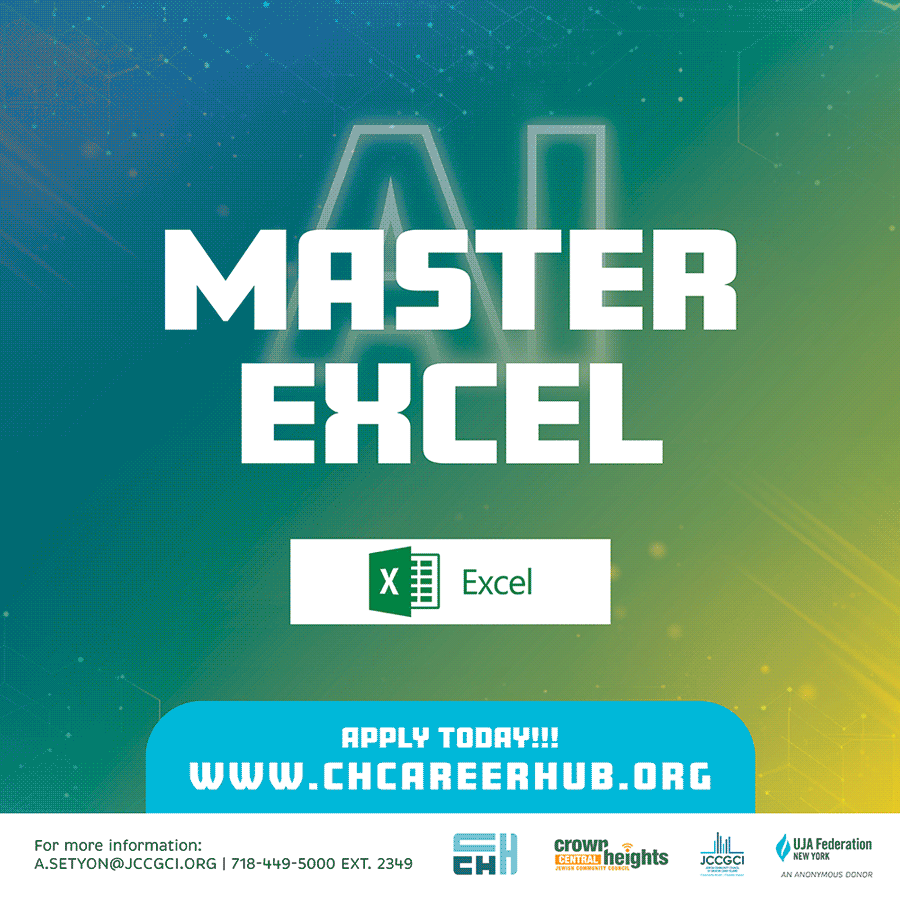 Due to popular demand, The Crown Heights Career Hub, an innovative employment training program, is once again offering an intensive evening ONLINE FULLY REMOTE EXCEL/GOOGLESHEETS/SALESFORCE 5-session evening BOOTCAMP, geared specifically for the Crown Heights Chabad community. You will master the latest skillsets needed to land a higher-paying job or advance in your present position by preparing you for higher-level employment.