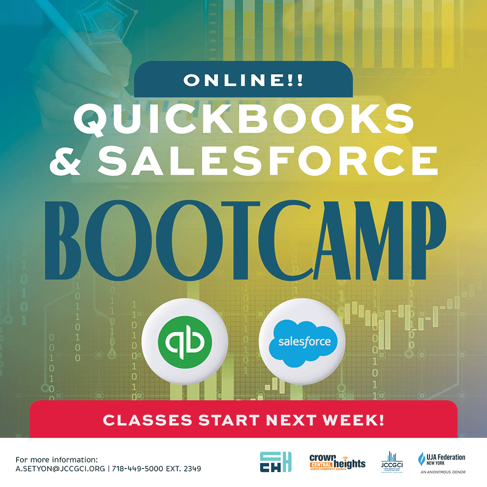 Due to popular demand, The Crown Heights Career Hub, an innovative employment training program, is offering another intensive online SIX-SESSION QUICKBOOKS/SALESFORCE training program geared specifically for the Chabad community. CHCH is an INTUIT CORP. AUTHORIZED QuickBooks training facility! In a short span of only SIX SESSIONS, our online course will help you gain the skillsets needed to land a higher-paying job, or help you advance in your present position, with proficiency in QUICKBOOKS AND SALESFORCE, preparing you for higher-level employment.